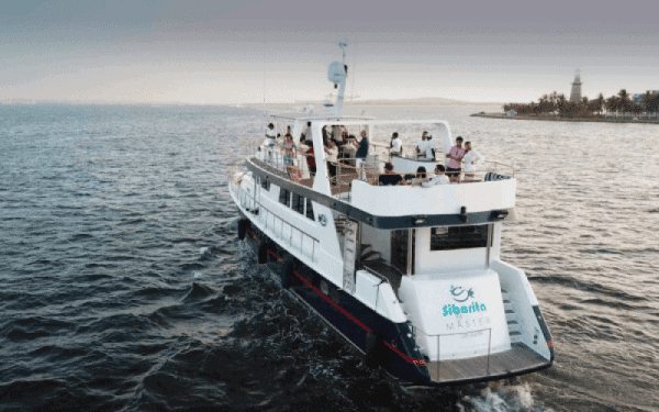 En el Atardecer por la bahía en Sibarita Master salimos del muelle de la Bodeguita, frente de la ciudad Amurallada de Cartagena. Navegamos entre los rascacielos de Manga y Bocagrande. Posteriormente, navegamos entre Isla Manzanillo y Castillo Grande. Llegamos delante de El Laguito y la isla Tierra Bomba, donde la bahía se abre al mar. Aquí disfrutamos de la magnífica puesta de sol mientras navegamos silenciosamente. Poco a poco las luces de los rascacielos van iluminándose.